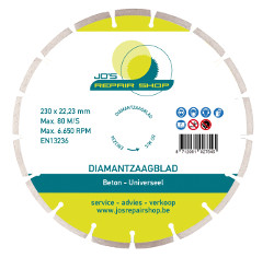 • Diamantschijf 230 mm universeel PL met JRS opdruk